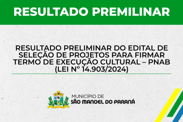 RESULTADO PRELIMINAR DO EDITAL DE SELEÇÃO DE PROJETOS PARA FIRMAR TERMO DE EXECUÇÃO CULTURAL – PNAB (LEI Nº 14.903/2024)