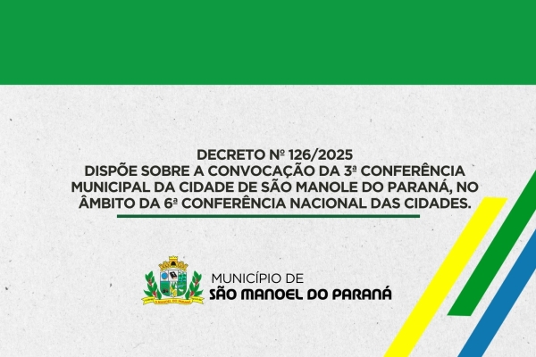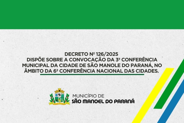 DECRETO Nº 126/2025 Dispõe sobre a Convocação da 3ª Conferência Municipal da Cidade de São Manole do Paraná, no âmbito da 6ª Conferência Nacional das Cidades.