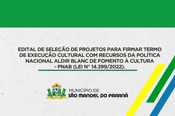 EDITAL DE SELEÇÃO DE PROJETOS PARA FIRMAR TERMO DE EXECUÇÃO CULTURAL COM RECURSOS DA POLÍTICA NACIONAL ALDIR BLANC DE FOMENTO À CULTURA - PNAB (LEI N° 14.399/2022).