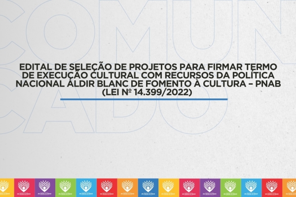EDITAL DE SELEÇÃO DE PROJETOS PARA FIRMAR TERMO DE EXECUÇÃO CULTURAL COM RECURSOS DA POLÍTICA NACIONAL ALDIR BLANC DE FOMENTO À CULTURA – PNAB (LEI Nº 14.399/2022)