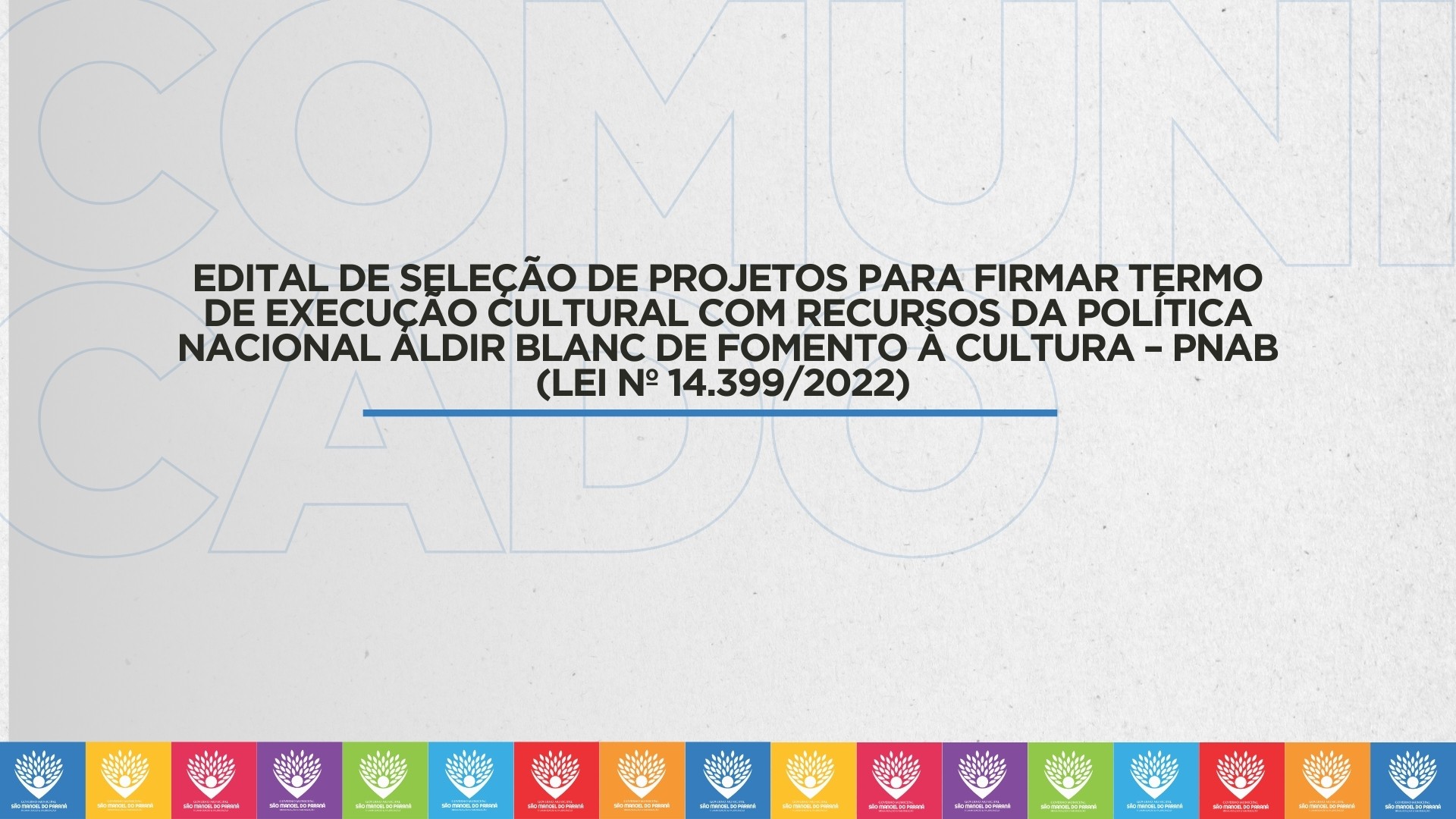 EDITAL DE SELEÇÃO DE PROJETOS PARA FIRMAR TERMO DE EXECUÇÃO CULTURAL COM RECURSOS DA POLÍTICA NACIONAL ALDIR BLANC DE FOMENTO À CULTURA – PNAB (LEI Nº 14.399/2022)
