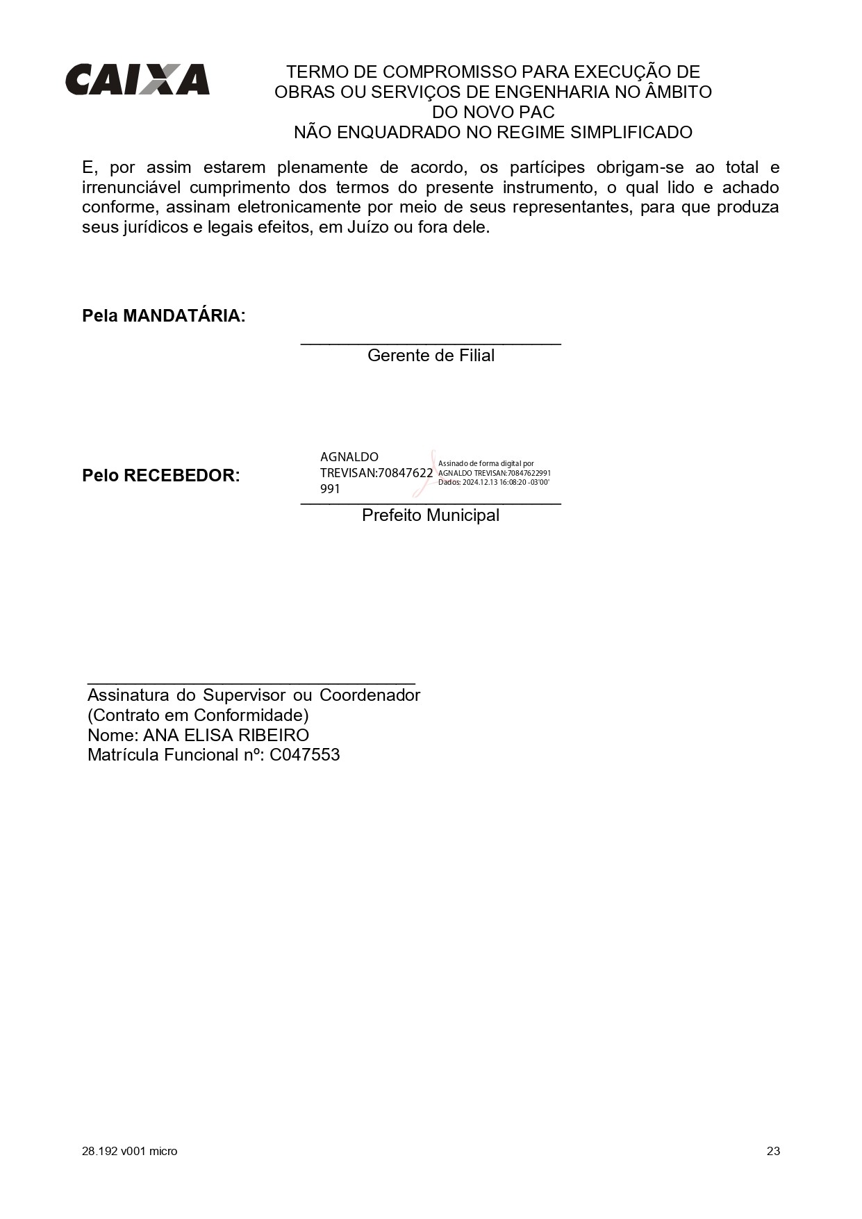 Durante a assinatura, o prefeito Agnaldo Trevisan destacou a relevância desse investimento para o município: