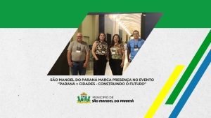 Entre os dias 12 e 14 de fevereiro, está sendo realizado em Foz do Iguaçu o evento "Paraná + Cidades - Construindo o Futuro", reunindo gestores de todos os municípios do estado para debater melhorias na gestão pública e o desenvolvimento das cidades. Representando São Manoel do Paraná, participam do evento o vice-prefeito Antonio Carlos Dinato, a secretária de Administração Elisangela Darmin, o secretário de Fazenda Fernando Rodrigues e a agente administrativa Suzilaine Beraldo.