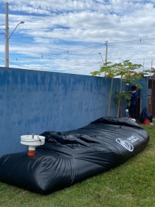 Logo após a instalação, os servidores responsáveis pela alimentação e manuseio do equipamento participaram de uma capacitação técnica, onde receberam orientações detalhadas sobre o funcionamento do biodigestor: como alimentá-lo corretamente, como retirar o biogás e o biofertilizante, os cuidados necessários com o equipamento e quais materiais podem ou não ser inseridos no sistema. Essa etapa é fundamental para garantir o uso eficiente e seguro da tecnologia, assegurando os benefícios esperados de forma contínua e sustentável.