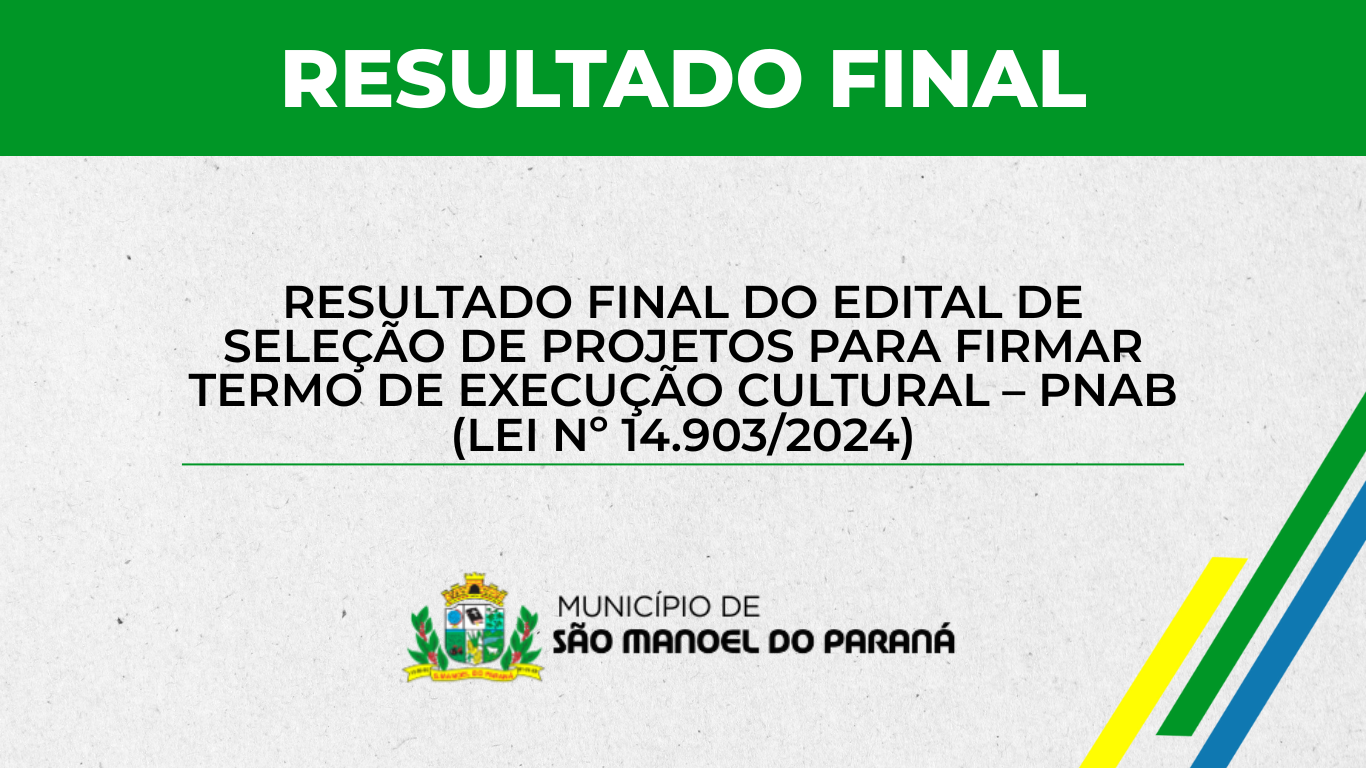 RESULTADO FINAL DO EDITAL DE SELEÇÃO DE PROJETOS PARA FIRMAR TERMO DE EXECUÇÃO CULTURAL – PNAB (LEI Nº 14.903/2024)