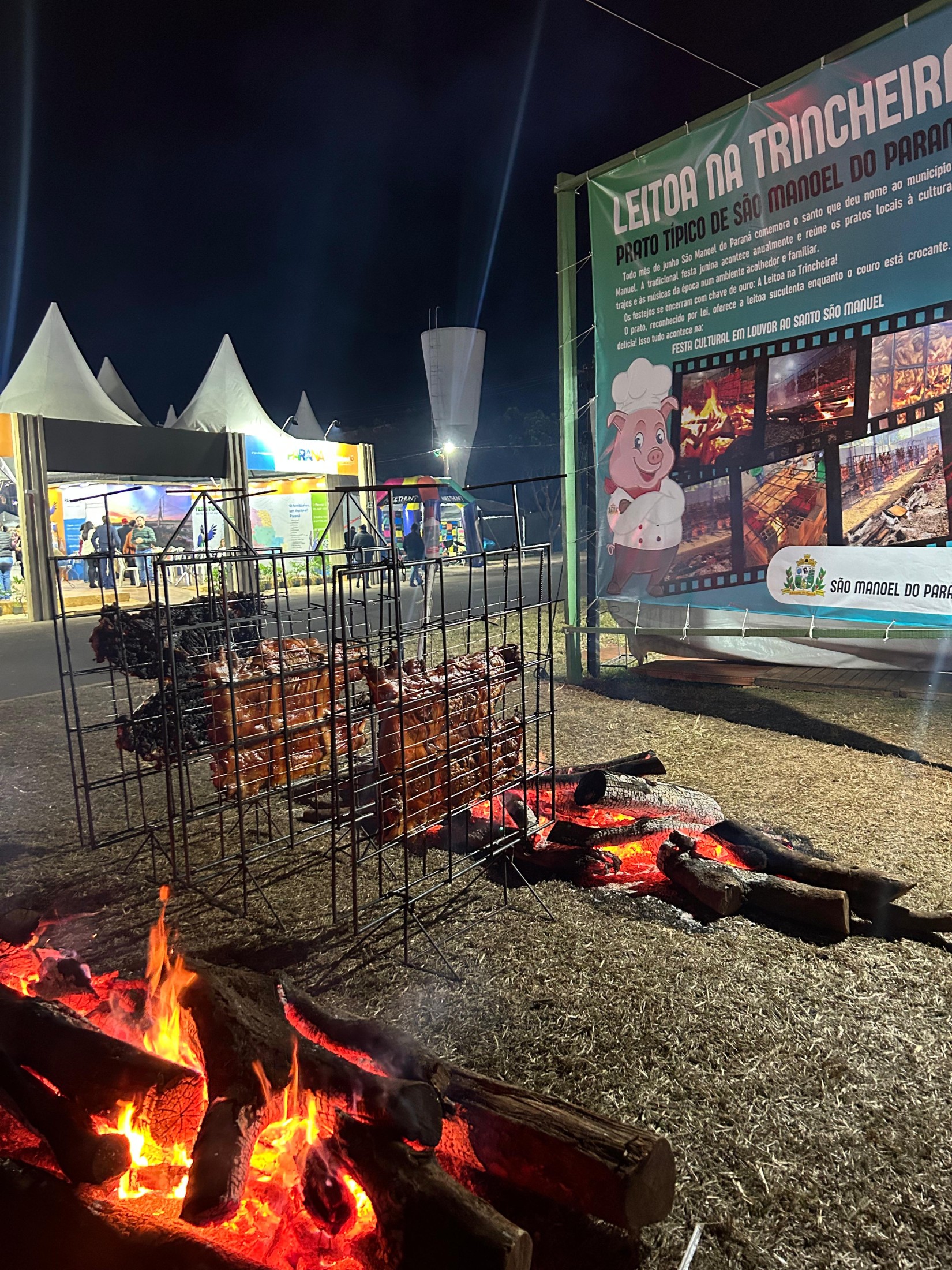 Pela primeira vez, o Cianorte Festival abriu espaço para que municípios da região apresentassem suas tradições, e São Manoel do Paraná/PR levou muito sabor com a tradicional leitoa na trincheira, acompanhada da saborosa mandioquese (maionese de mandioca), iguarias que encantaram o público presente.