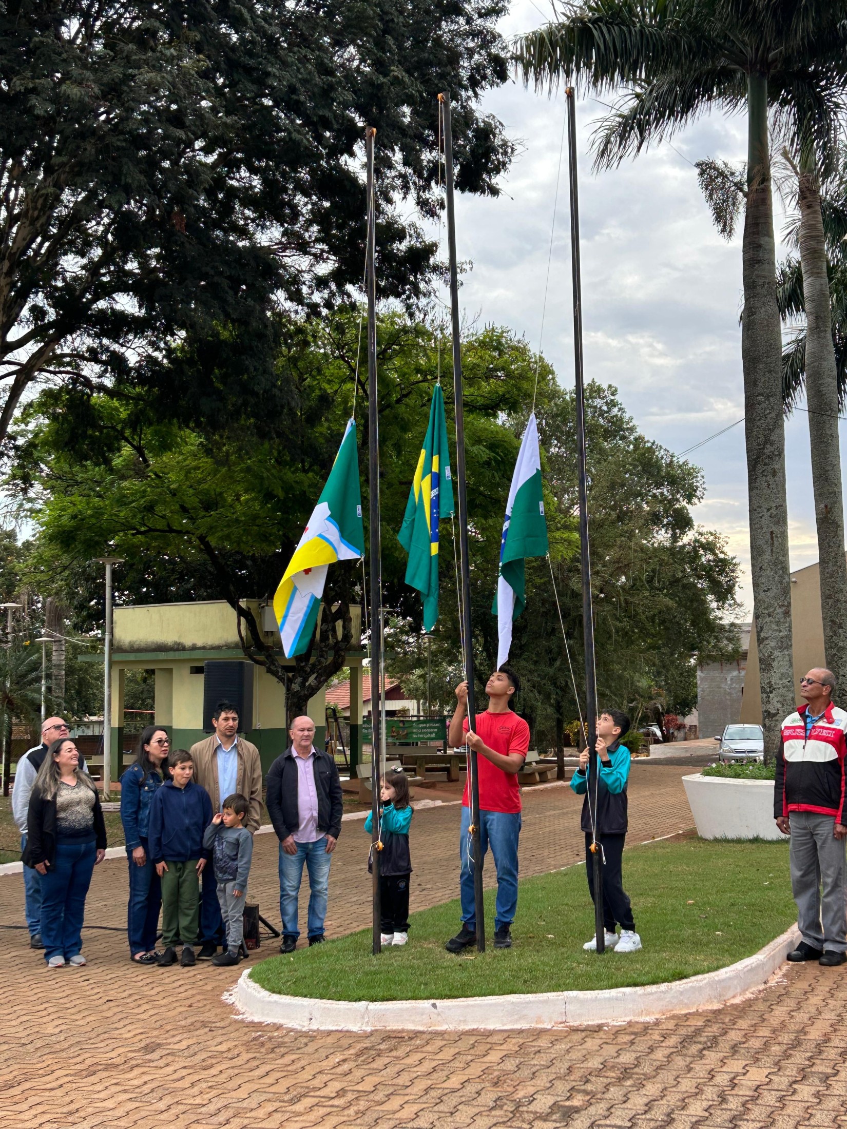 O hasteamento das bandeiras ficou a cargo de representantes das instituições educacionais do município: a bandeira do Brasil foi hasteada por um estudante do Colégio Estadual Duque de Caxias, a do Paraná por um da Escola Municipal Monteiro Lobato e a de São Manoel do Paraná por uma aluna do Centro Municipal de Educação Infantil Pequeno Príncipe. Ao lado do pavilhão, autoridades municipais, famílias e membros da comunidade acompanharam o momento solene, reforçando o espírito de união e patriotismo.