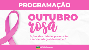 • 07/10 – Abertura oficial com palestra da Dra. Juraci, às 18h, em frente à Unidade de Saúde. Logo após, aulão de dança para todas as mulheres e sorteio de brindes.