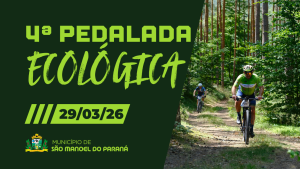 A Administração Municipal de São Manoel do Paraná/PR, por meio da Secretaria Municipal de Meio Ambiente, Sustentabilidade, Turismo e Cultura e demais Secretarias Municipais, convida a comunidade para a 4ª edição da Pedalada Ecológica, que será realizada no dia 29 de março de 2026.