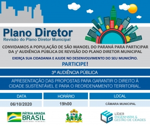A Audiência Pública é aberta a toda população, onde todos terão direito a voz e voto. Contamos com a participação de todos nesse processo de construção de uma cidade melhor.